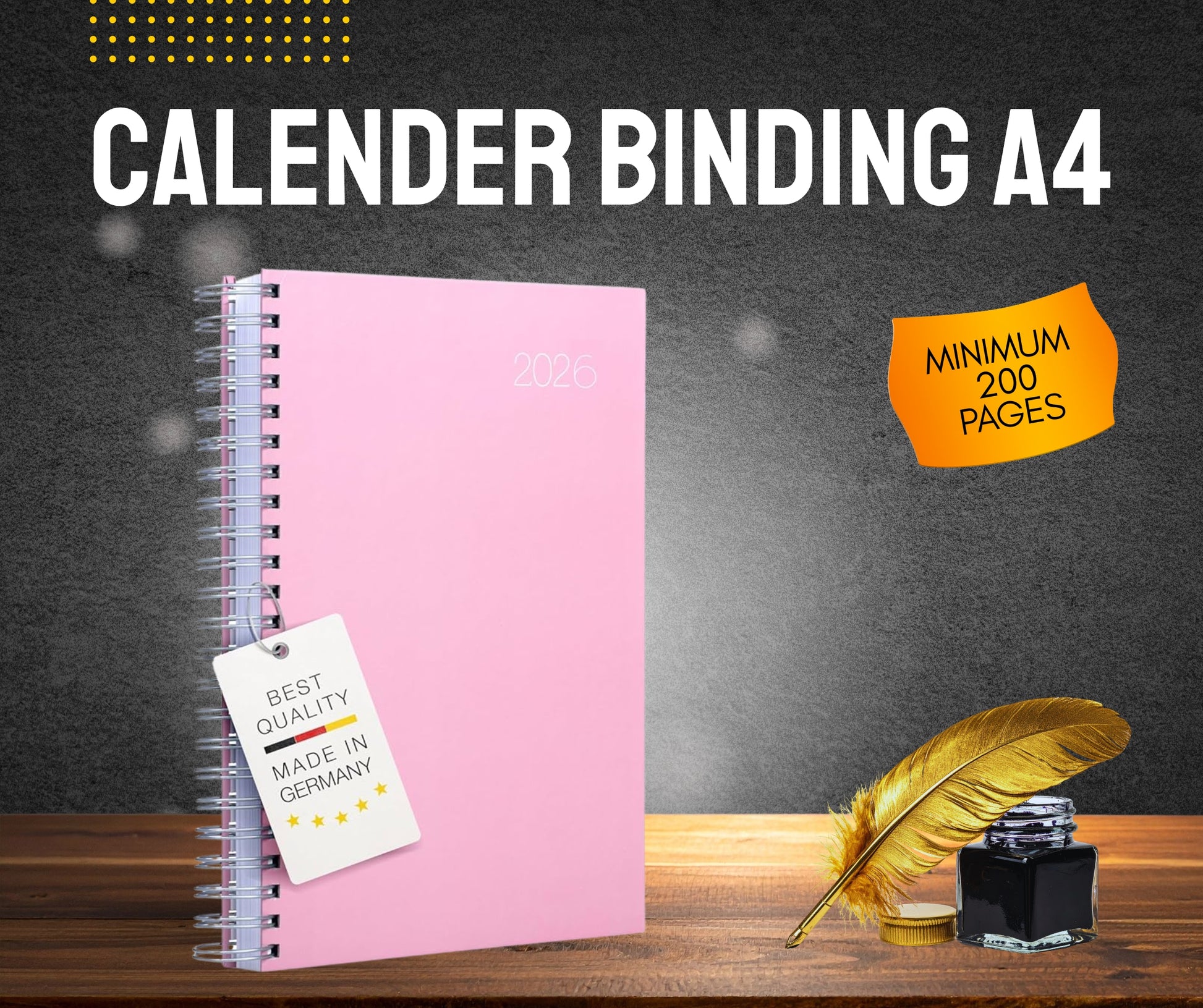 Professional CALENDER BINDING A4 MINIMUM services for documents, theses, reports, and presentations. Various binding options available including spiral, tape, and hardcover binding.